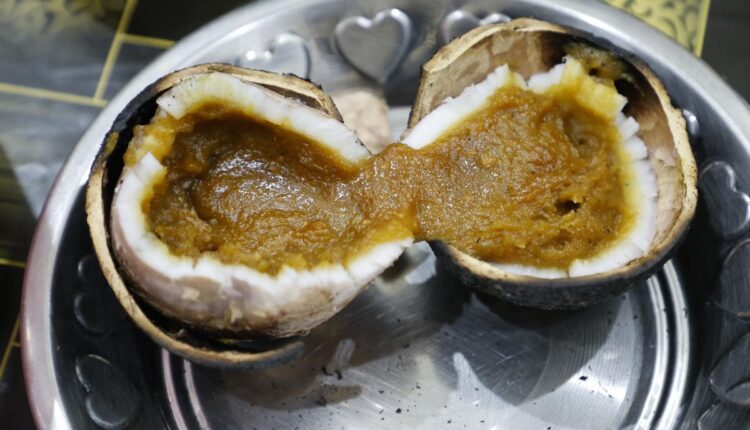 நெருப்பிலிருந்து எடுத்த சுட்ட தேங்காயை நன்றாக ஆற வைத்து, சுத்தியல் கொண்டு ஒட்டைத் தட்டி திறக்க வேண்டும். உள்ளே சேர்த்த உணவுப் பொருள்களின் கலவை தேங்காயோடு சேர்த்து வேக வைக்கப்பட்டதன் விளைவாகச் சிறப்பான உணவுப் பண்டமாக மாறியிருக்கும். வாசனையோ சுற்றமும் பரவி கமகமக்கும்!