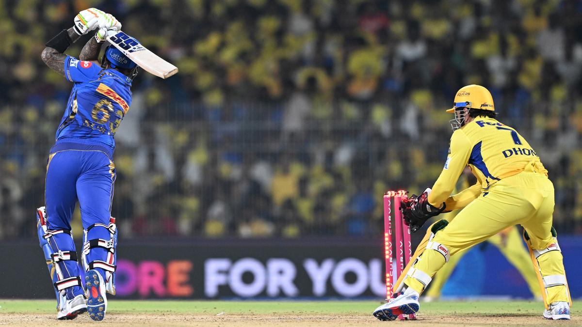 நூர் அகமது வீசிய 11-வது ஓவரில் பெரிய ஷாட் ஆட முயன்றார் மும்பை வீரர் சூர்யாக்குமார் யாதவ். ஆனால், பந்து நன்றாக திரும்ப அதை அவர் மிஸ் செய்தார். ஸ்டம்புக்கு பின்னால் நின்ற தோனி பந்தை அப்படியே பற்றி, 0.12 விநாடிகளில் ஸ்டம்புகளை தகர்த்தார். சூர்யகுமார் யாதவ், தனது பேட் வீச்சை நிறைவு செய்வதற்குள் தோனி அவரை ஸ்டம்பிங் செய்து வெளியேற்றிவிட்டார். முக்கிய தருணத்தில் அந்த விக்கெட் ஆட்டத்தின் திருப்புமுனையாக அமைந்தது.