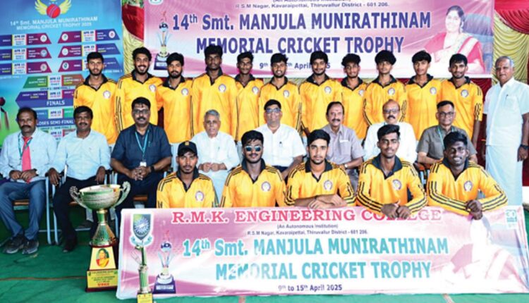 சென்னை: சென்னையை அடுத்த கவரப்பேட்டையில் உள்ள ஆர்எம்கே பொறியியல் கல்லூரியில் 16 அணிகள் கலந்து கொண்டுள்ள கல்லூரி களுக்கு இடையிலான மஞ்சுளா முனிரத்தினம் நினைவு 420 கிரிக்கெட் தொடர் நடைபெற்றது. இதன் இறுதிப் போட்டியில் நேற்று ஆர்எம்கே பொறியியல் கல்லூரி – லயோலா கல்லூரி அணிகள் மோதின.