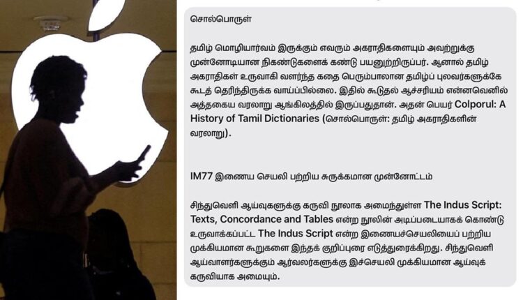 சங்க காலங்களில் ஓலைச்சுவடிகளில் தமிழ் எழுதப்பட்டது, கல்வெட்டுகளில் தமிழ் செதுக்கப்பட்டது. இன்றைய டிஜிட்டல் யுகத்தில் டிஜிட்டல் சாதனத்தின் விசைப்பலகையில் தமிழ் தட்டச்சு / உள்ளிட / எழுதப்படுகிறது. இந்த நிலையில், அண்மையில் ஆப்பிள் நிறுவனம் அதன் ஐபோன் மற்றும் மேக் சாதனங்களுக்கு இயங்குதள அப்டேட்களை அறிமுகம் செய்ய, அதன் ஊடாக புதிய சிக்கல் எழுந்துள்ளது. இதில் பயனர்களுக்கு குட் மற்றும் பேட் அனுபவமாக அமைந்துள்ளது. நல்ல செய்தி என்னவென்றால், தமிழ் உட்பட 10 இந்திய மொழிகளில் அந்த சாதனைகளின் பயனர்கள் கமெண்ட் கொடுக்கவும், மெனுக்களை பார்க்கவும் முடியும்.